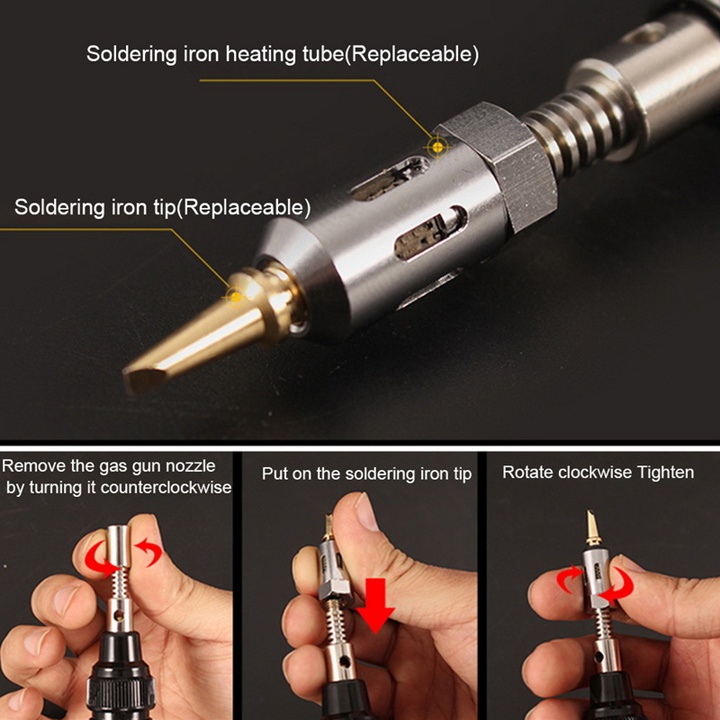 Sản phẩm dùng gas, có van bơm khi hết gas, bạn có thể mở và tắt cũng như tăng giảm độ lớn của lửa bằng cách xoay phần thân bút, tác động đến nhiệt độ của đầu hàn dao động từ 250-500 độ C, tương ứng với mỏ hàn điện 30-70W.