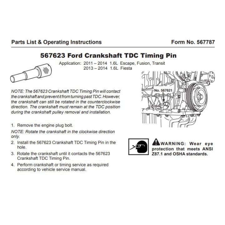 D. Crankshaft Timing Pin: Ford 303-748, Volvo 999-7406, Mazda 303-507