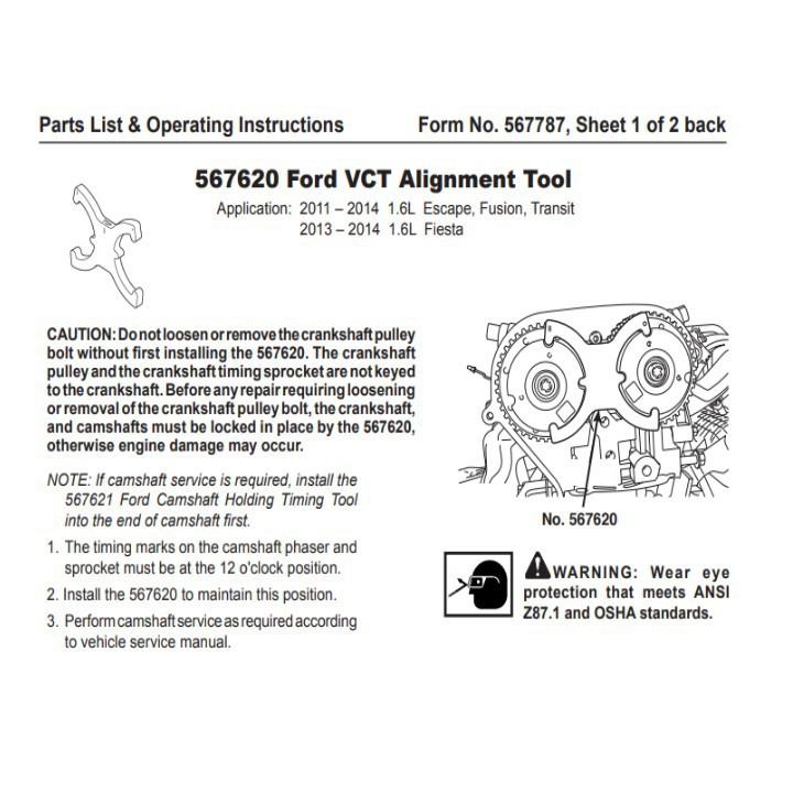 Contain the time saving tool correctly align the timing cover on Ford and Volvo engines and the crankshaft pulley holder for Mazda engine.