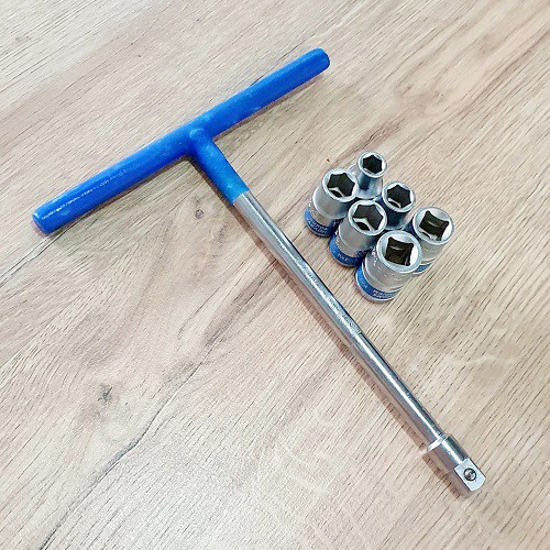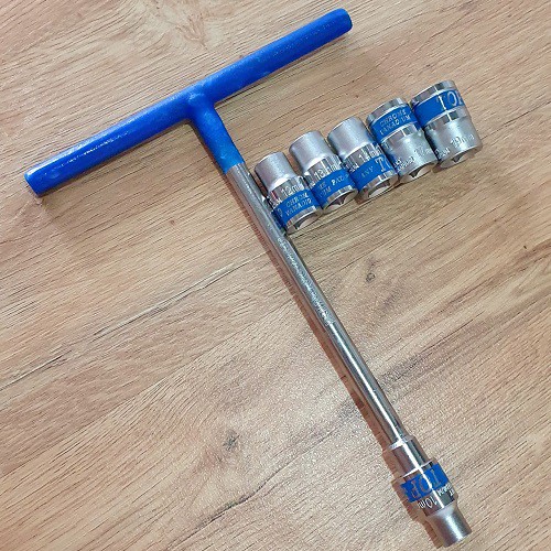 Cần siết 1/2 cán tạo lực chữ T và 6 đầu tuýp lục giác 1/2 inch các cỡ 10mm-12mm-13mm-14mm-17mm-19mm