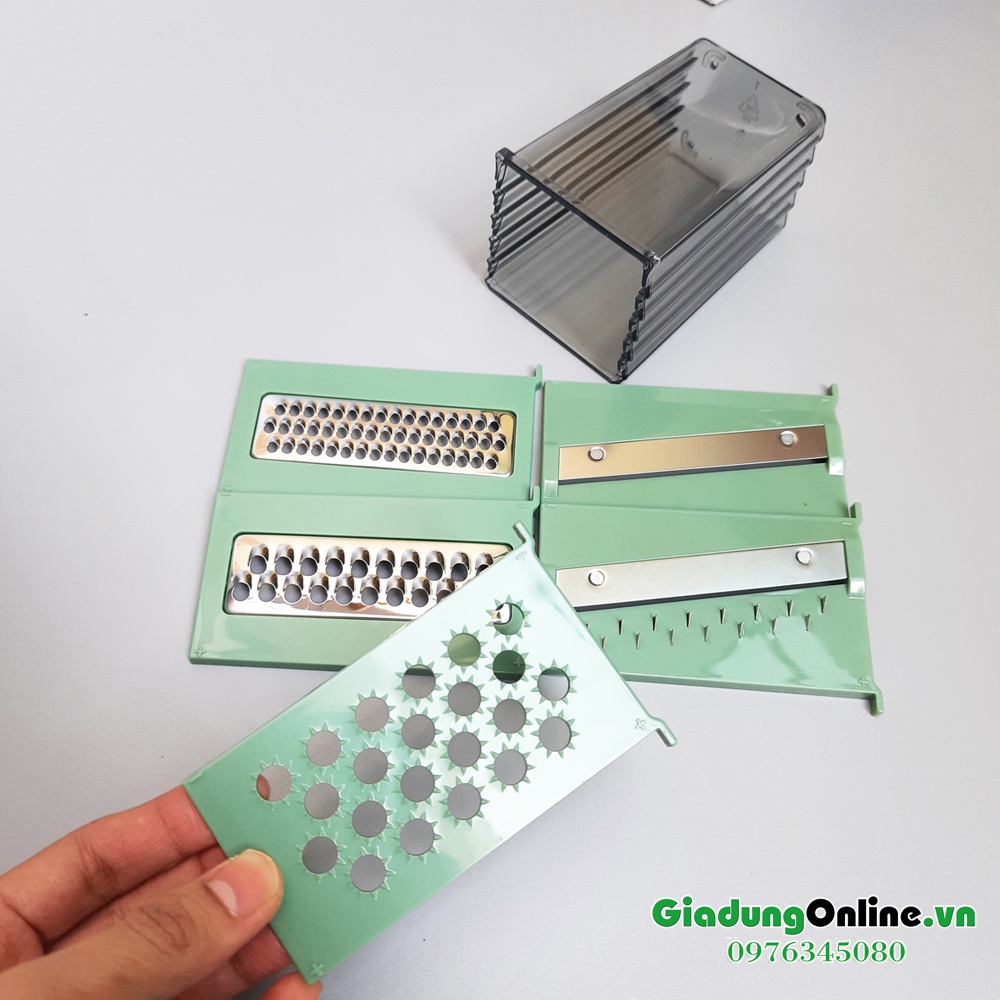 - Chức năng xắt hạt lựu, xắt sợi, thái lát, mài nhuyễn cắt rau củ nhanh chóng nhiều kích cỡ