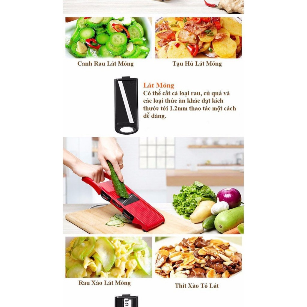 Công dụng : cắt lát bào tất cả loại rau củ quả