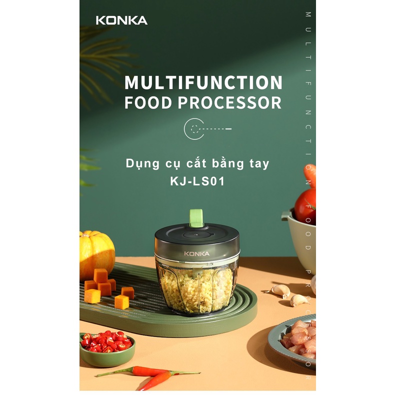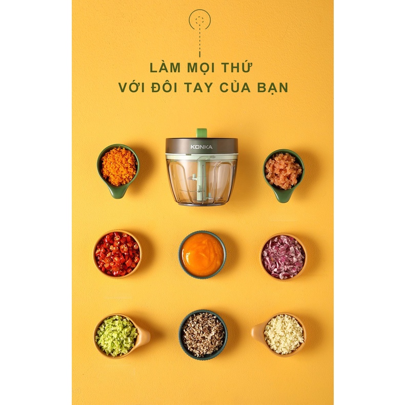 Tên sản phẩm: Dụng Cụ Xay Tỏi Ớt Cầm Tay Máy Xay Thịt Bằng Tay Mini Đa Năng Lưỡi Cắt Thép Không Gỉ An Toàn Thực Phẩm 500ml KONKA KJ-LS01