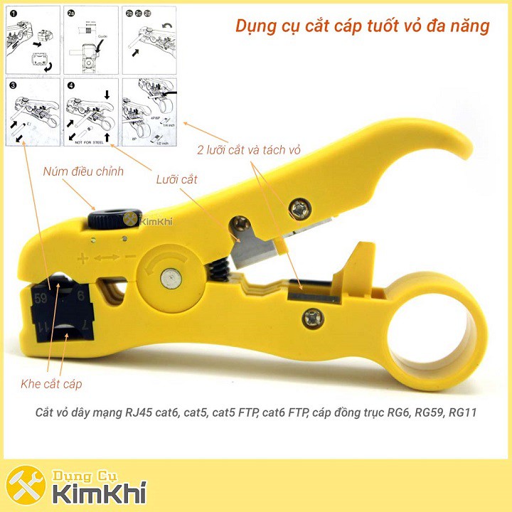 Tách vỏ cáp mạng hoặc cáp tín hiệu: 4P /6P/8P; UTP/STP