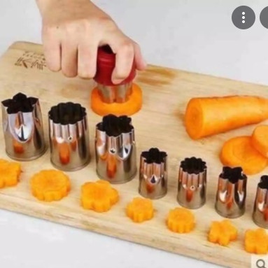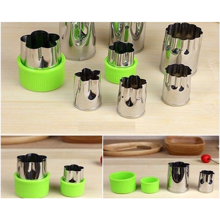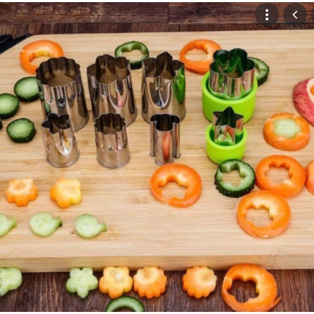 - Bộ khuôn cắt tạo hình rau củ quả 8 món thật tiện dụng là sản phẩm hữu ích giúp các bà nội trợ tạo ra những hình dạng rau củ xinh xắn khác nhau giúp trang trí cho món ăn thêm phần đẹp mắt.