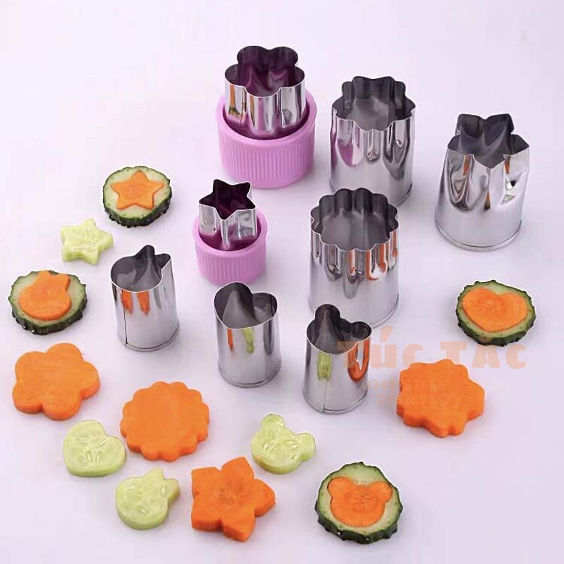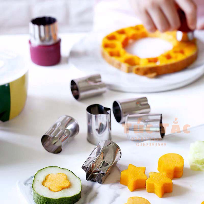 Bộ sản phẩm gồm 8 khuôn cắt inox tạo hình với nhiều hình dáng như hình hoa, hình sao...