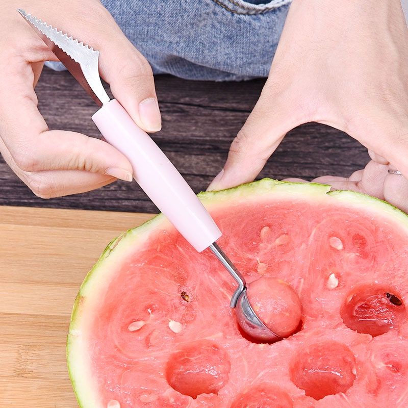 - Muỗng hai đầu được thiết kế gồm 2 đầu, một đầu dùng để múc các loại quả mềm như dưa hấu, đu đủ, thanh long… một đầu để tỉa rau củ, hoa quả, cho bạn gái thể hiện sự khéo léo và cắt tỉa nhiều dĩa hoa quả bắt mắt cho cả gia đình.- Đầu tạo hình tam giác: dùng để tạo ra các đường nét sâu có hình tam giác thường được dùng để tỉa rau củ và hoa quả