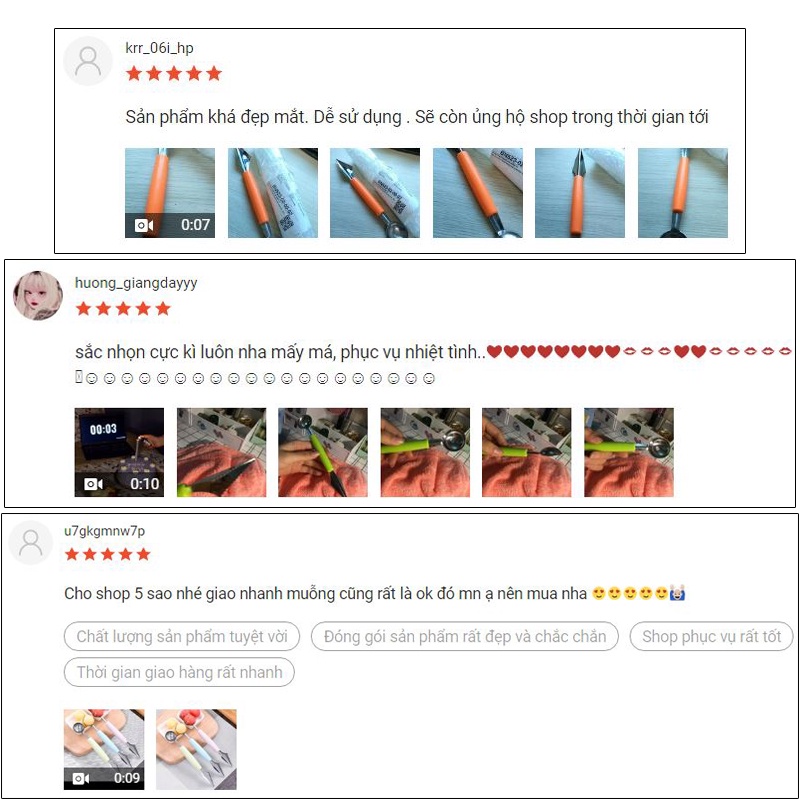 Dụng cụ tạo hình tam giác: dùng để tạo ra các đường nét sâu có hình tam giác thường được dùng để tỉa rau củ và hoa quả Dụng cụ muỗng múc: muỗng xoay 360, tạo ra các khối tròn thường được dùng cho các loại quả mềm như dưa hấu, bơ ,thanh long…