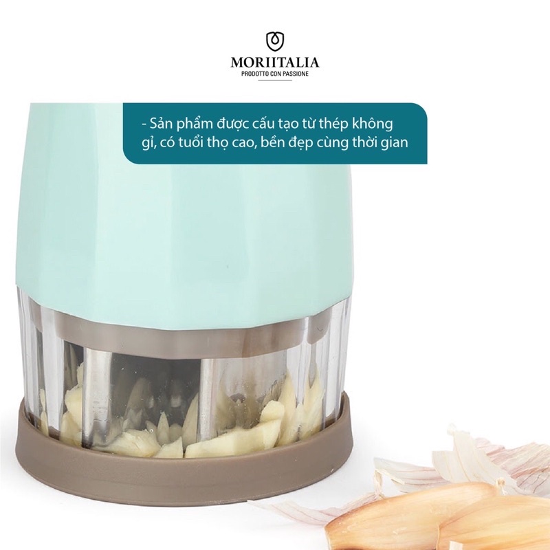 - Có kiểu dáng gọn nhẹ, thiết kế thông minh giúp người nội trợ băm xay tỏi ớt, rau củ quả một cách nhanh chóng, an toàn.