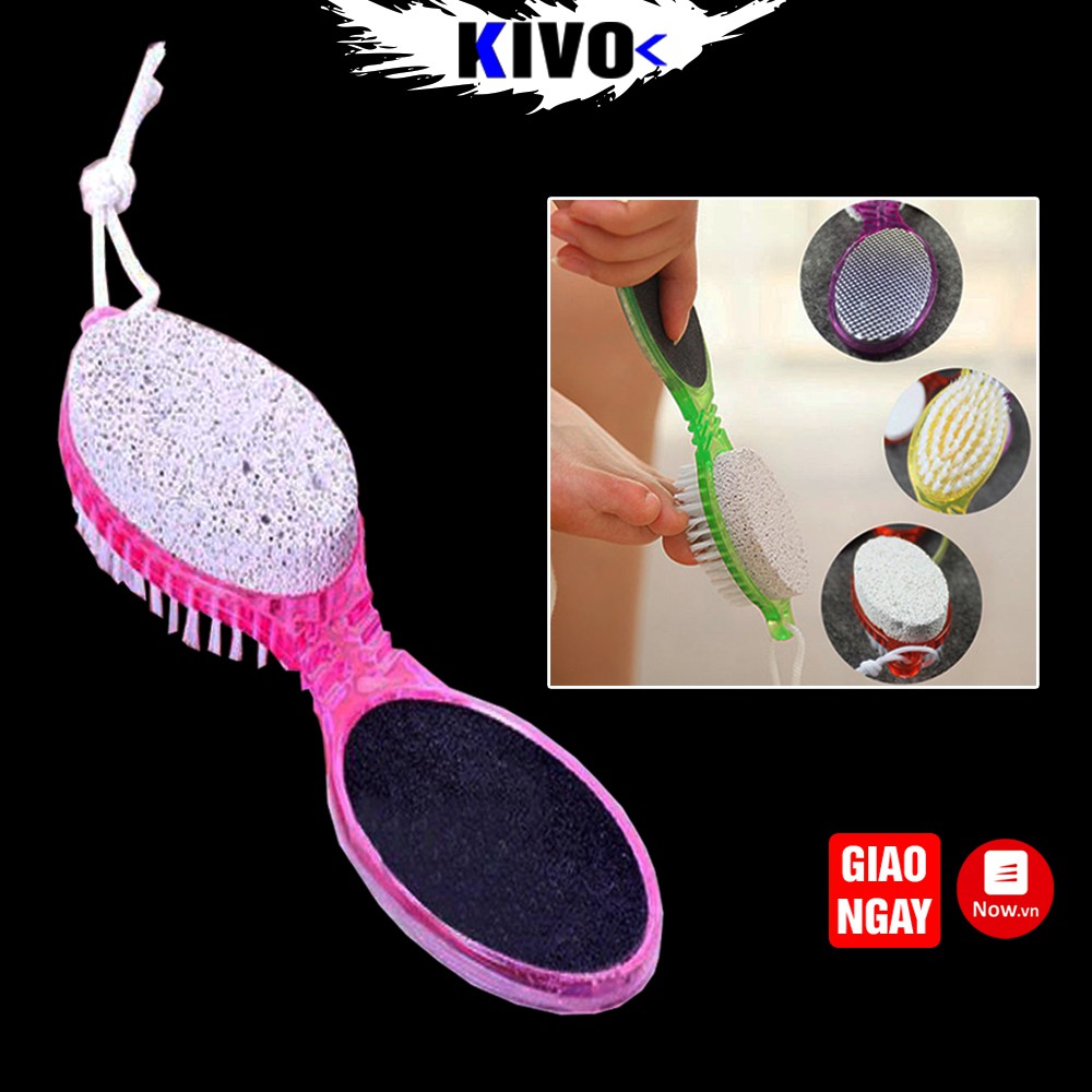 Dụng Cụ Chà Gót Chân 4 in 1 - Cây Chà Gót Chân Bàn Chải Lông Mềm, Đá Mài Gót Chân, Bàn Chà Nhám - Kivo
