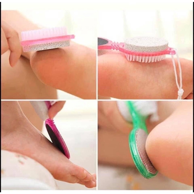 💅Dụng cụ chà gót chân được thiết kế tiện dụng với 4 mặt gồm bàn chải nhựa, đá bọt khô, bàn chải kim loại, bàn chà nhám.