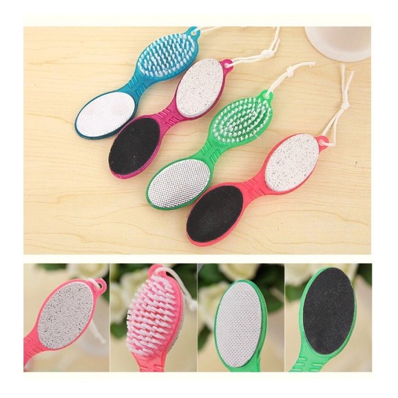 - Dụng cụ chà gót chân được thiết kế tiện dụng với 4 mặt gồm bàn chải nhựa, đá bọt khô, bàn chải kim loại, bàn chà nhám. Nhờ đó, bạn có thể thực hiện việc chăm sóc gót theo đúng quy trình để có được gót chân hồng hào như ý.