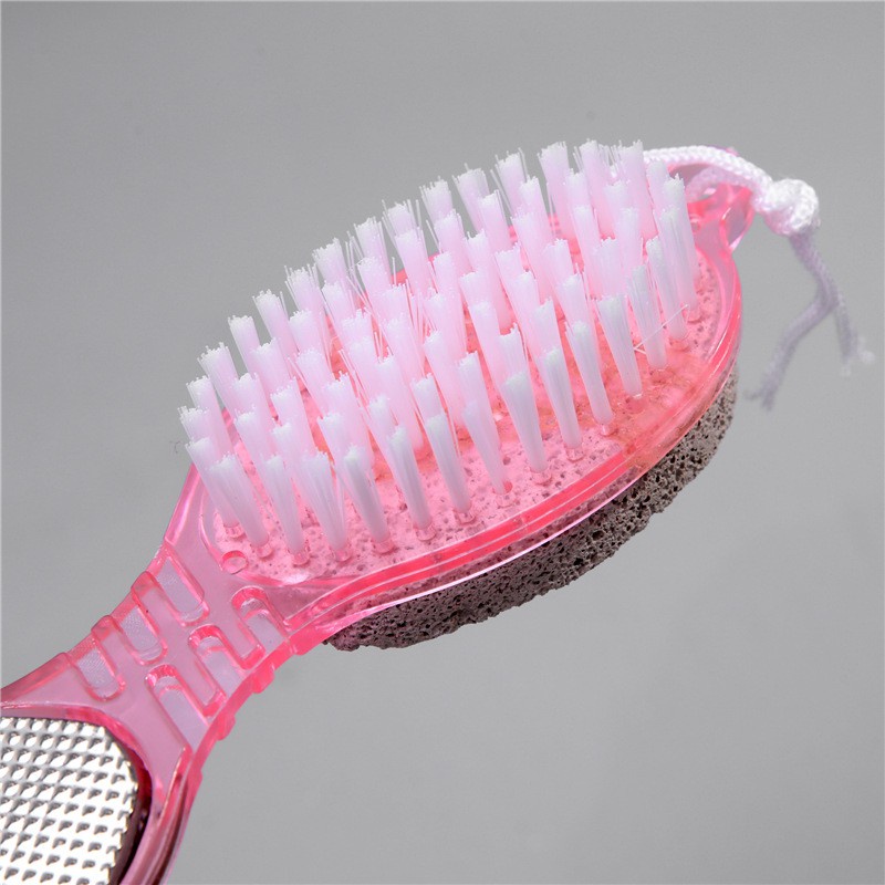 Dụng cụ chà gót chân tiện dụng có cấu tạo 2 phần gồm phần tay cầm và bàn chải. Bàn chải có 4 mặt bàn chải nhựa, đá bọt khô, bàn chải kim loại, bàn chà nhám giúp tẩy tế bào chết, lớp da sần, lớp sừng ở gót chân.
