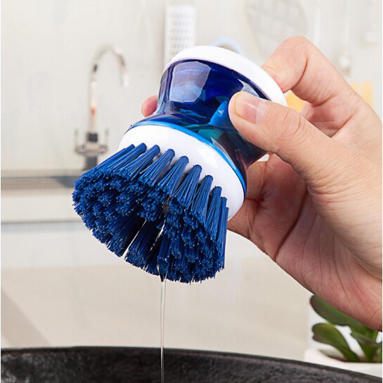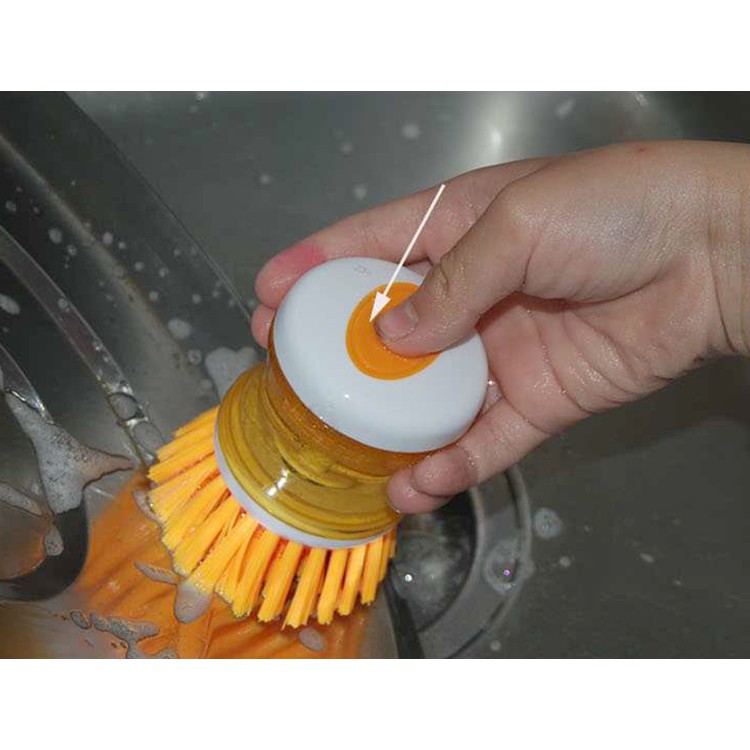 Ngoài việc cọ rửa bát, bạn cũng có thể sử dụng dụng cụ này để cọ nhiều thứ khác khi cần. Trên đầu chổi cọ có nút ấn, bạn ấn nhẹ vào nút này mỗi khi muốn có thêm xà phòng khi cọ rửa. Chổi cọ có độ cứng vừa phải, không làm hỏng lớp tráng nồi, xoong chảo mà vẫn giúp đánh bay các vết bẩn "cứng đầu" nhất.