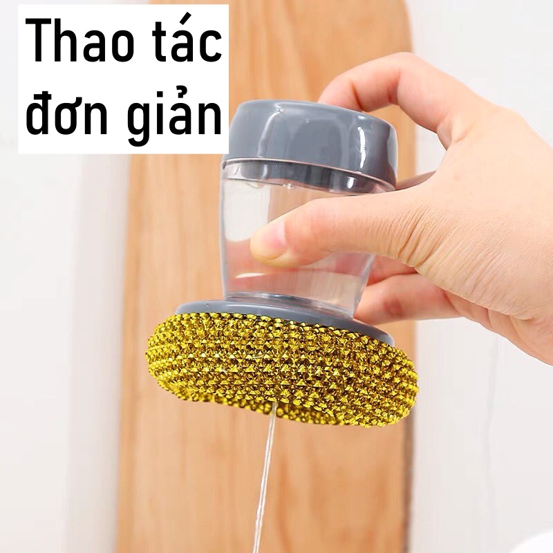 Dụng cụ chà nồi, vệ sinh xoong nồi, bồn rửa có tay cầm và bình chứa 2 trong 1+ Kích thước sản phẩm: 10 X 9 cm
