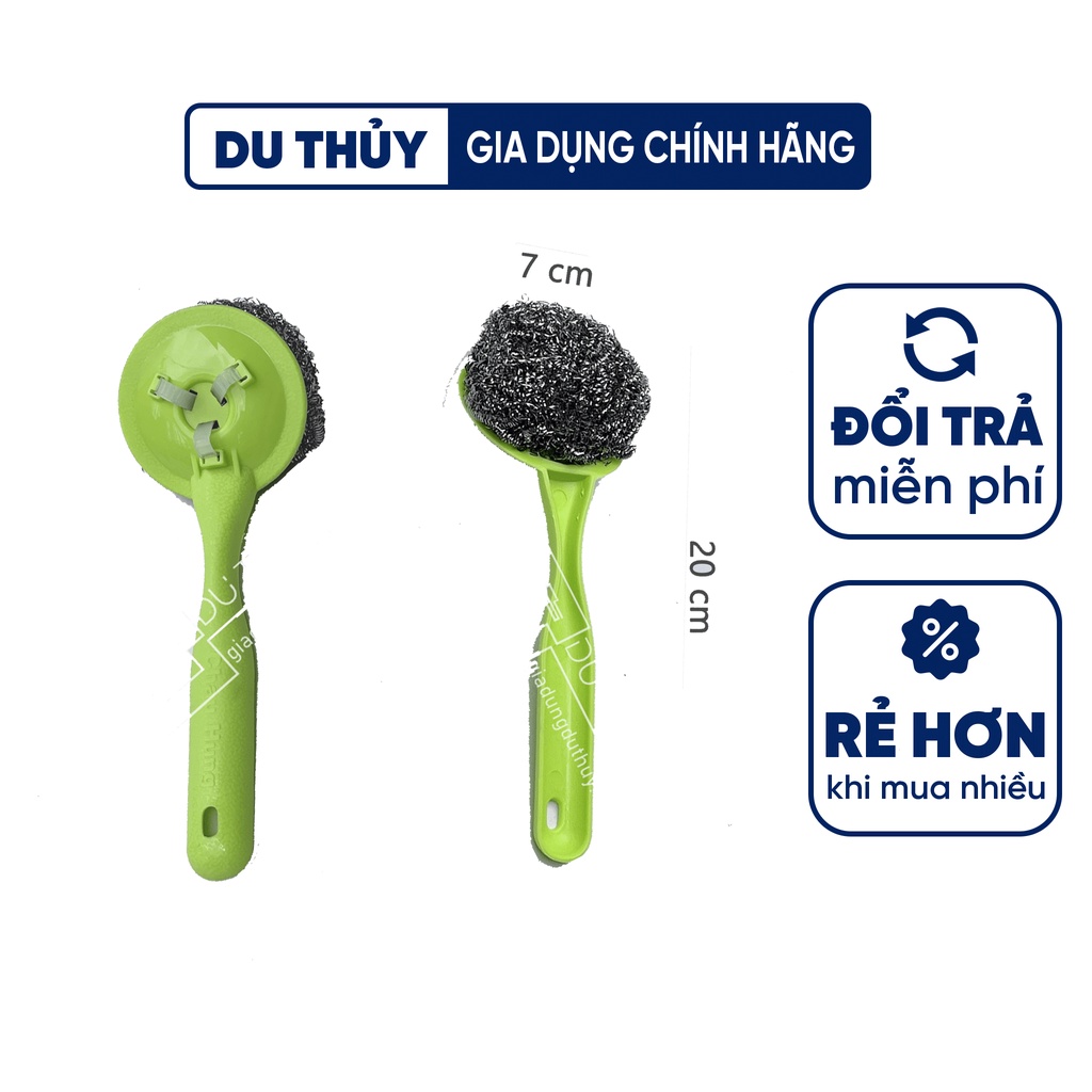 Dụng cụ chà rửa nồi, chảo, cước rửa chén có cán cầm, dài 20cm, đường kính 7cm thiết kế thông minh tại gia dụng Du Thủy