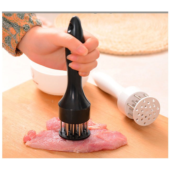 Dụng Cụ Dầm Thịt Mềm Thông Minh - Tiện Lợi- Sản phẩm được làm từ nhựa cao cấp và thép không rỉ , có thiết kế nhỏ gọn , phần tay cầm vừa vặn , trọng lượng tuy không quá nặng nhưng khi được chịu tác động lớn sẽ có lực lớn lên miếng thịt , làm cho miếng thịt có độ dày đều hơn giúp thịt ngấm đều gia vị và chế biến nhanh hơn .