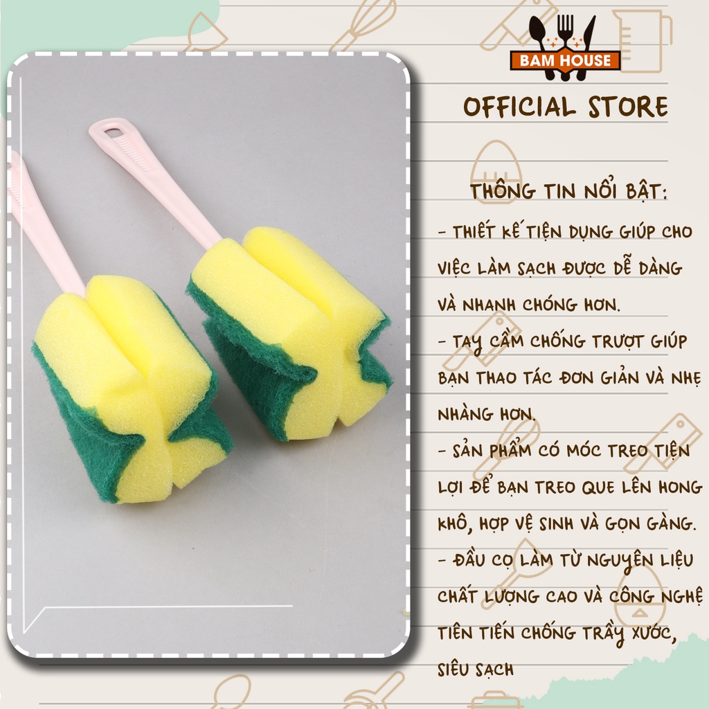 Dụng cụ chùi ly đầu bọt biển Bam House rửa ly siêu sạch tay cầm chắc chắn cao cấp đang được phân phối bởi Bam House