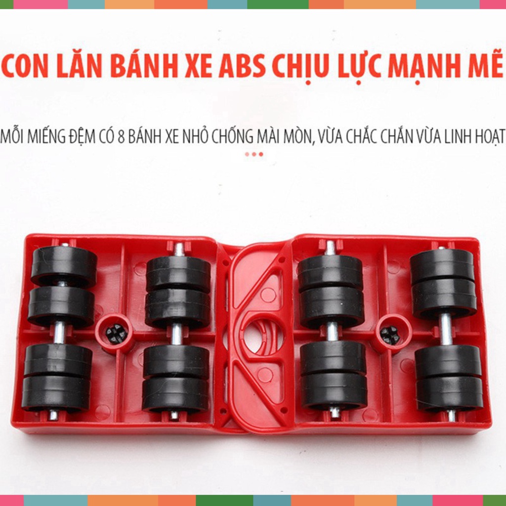 Đặt 4 bánh xe vào 4 góc vừa nâng sau đó là có thể nhẹ nhàng đẩy đồ vật đến chỗ cần di chuyển.