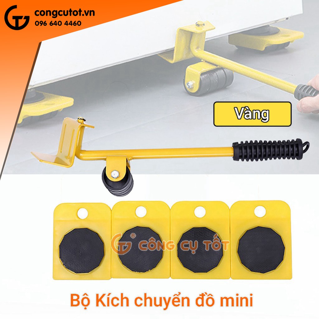 Bộ kích chuyển đồ mini màu vàng gồm: 1 Thanh bẩy, 4 Miếng đệm có bánh xe. Sản phẩm làm từ thép hợp kim và nhựa cứng ABS có độ bền cao, chịu lực tốt. Đây là bộ dụng cụ cần thiết trong mỗi gia đình, xí nghiệp, xưởng sản xuất vừa và nhỏ,...giúp dễ dàng di chuyển các vật dụng, vật liệu cồng kềnh, nặng mà một hay hai người bình thường không làm được.Dụng cụ hỗ trợ đắc lực trong việc di chuyển những đồ đạc cồng kềnh, nặng nề