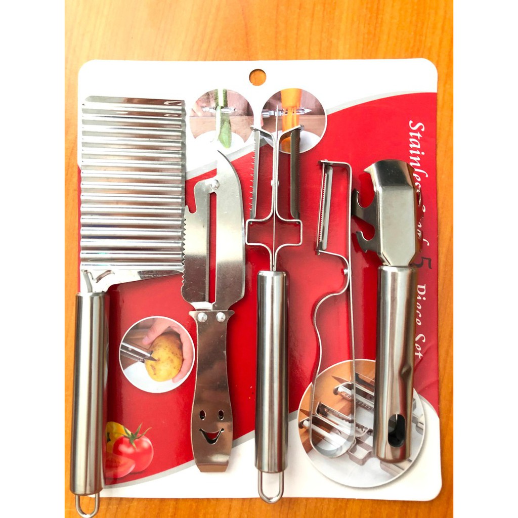 Dụng cụ chuyên dụng cắt gọt rau củ quả 5 chi tiết bằng inox an toànSản phẩm bao gồm: 5 món