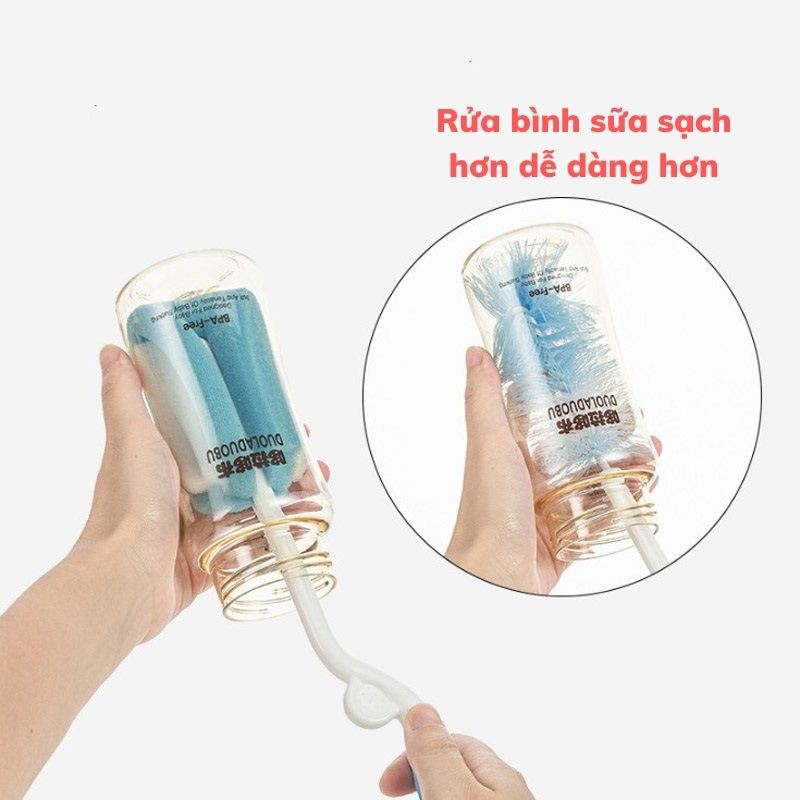 - Bộ gồm: + 2 chổi cọ bình sữa quay 360 độ,