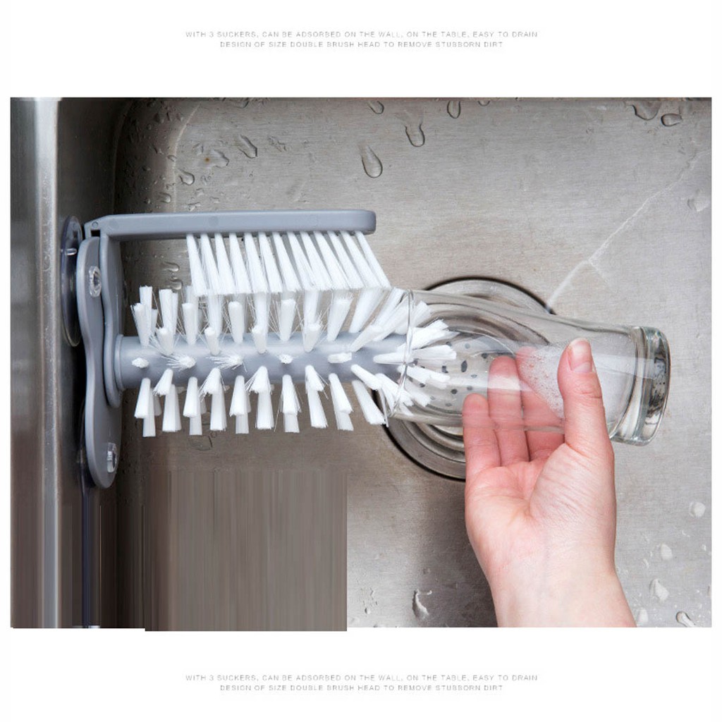 Dụng cụ cọ chà rửa ly cốc tách 2 mặt thông minh D3257 để bàn hoặc gắn tường tiện lợi