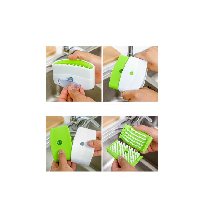 - Bàn chải có thể tháo rời thành hai bàn chải riêng biệt, dùng chà rửa củ quả hoặc thức ăn cứng rất tiện dụng