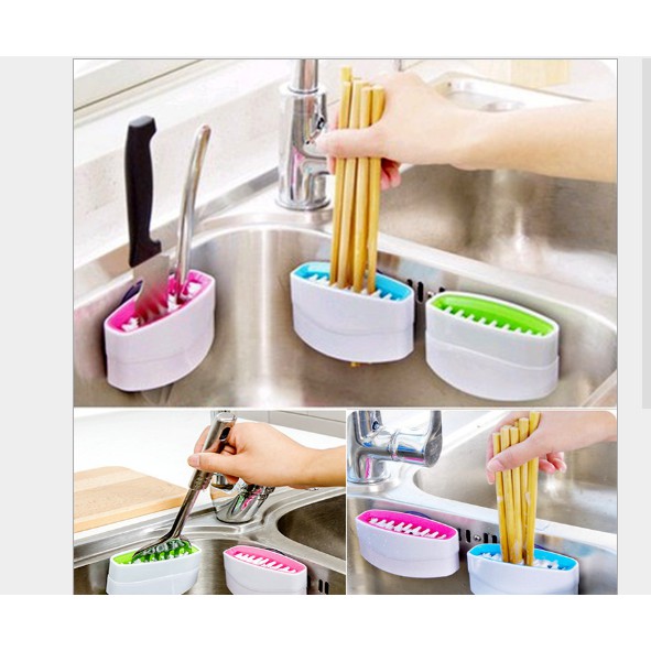 DỤNG CỤ CỌ RỬA DAO ĐŨA ĐA NĂNG- Bàn chải thiết kế thông minh gồm hai phần ôm sát, giúp kẹp chắc đũa, dao khi chà rửa