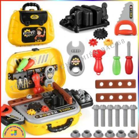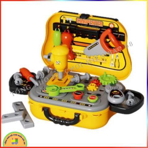 Đồ chơi dụng cụ cơ khí sửa chữa nhà cửa cho bé tập làm kĩ sư có kìm, búa, vít, khoan kèm vali đựng đồ TKMB68