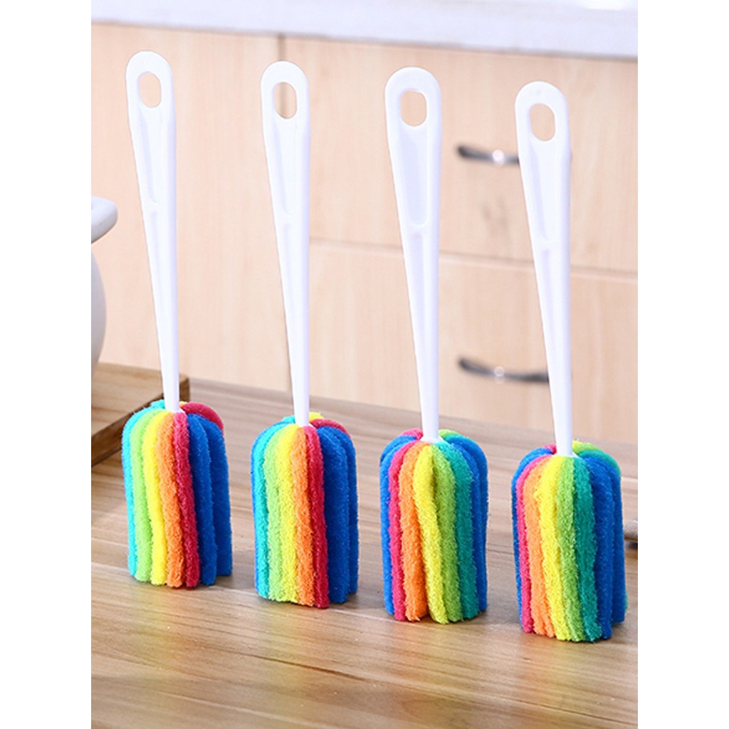 Dụng cụ cọ rửa bình sữa ly cốc bọt biển 7 màu