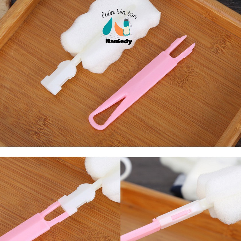 Dụng cụ cọ rửa bình sữa vệ sinh ly cốc bình giữ nhiệt bọt biển đầu mút trắng NANIEDY chất lượng tốt