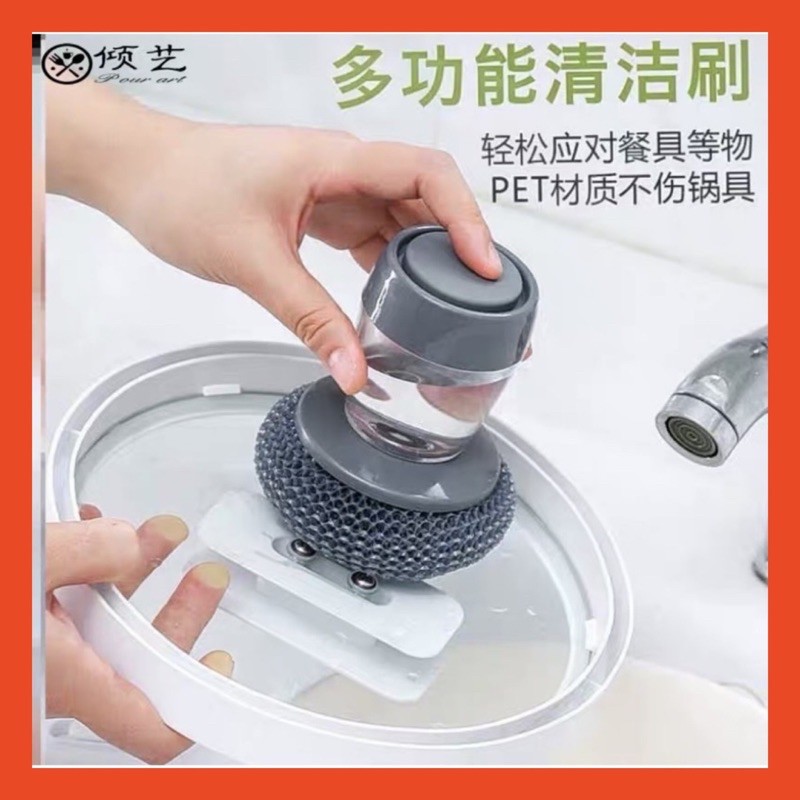 ️🍀Sản phẩm Dụng cụ cọ rửa bát đa năng bao gồm 1 miếng cọ rửa bát và 1 bình đựng nước rửa phía trên gắn trực tiếp lên miếng cọ rửa.