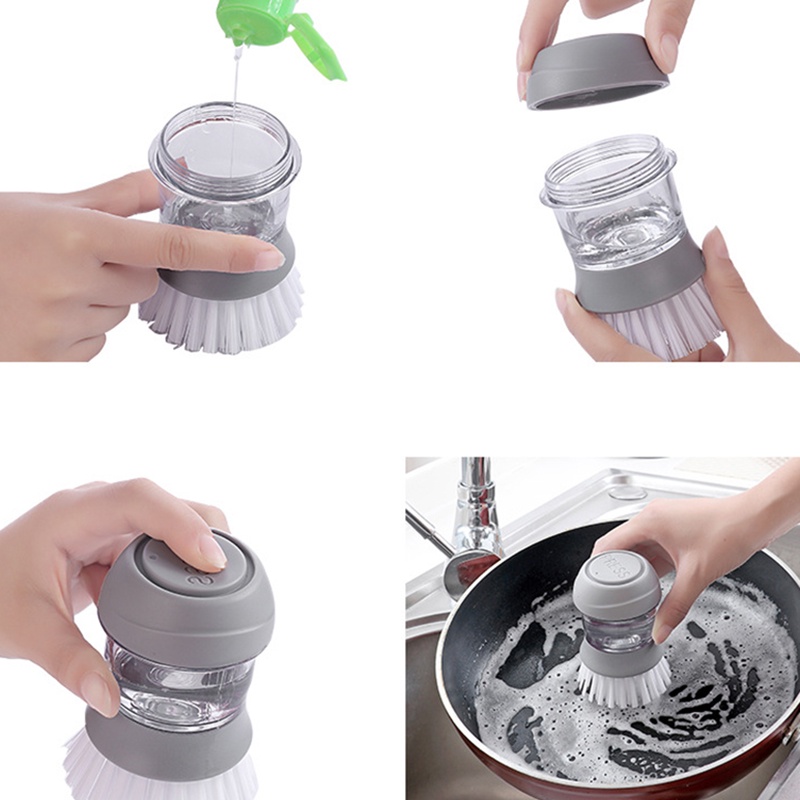Dụng cụ cọ rửa đa năng, cọ xoong nồi, cọ bếp 2in1 có bình chứa chất tẩy tiện lợi