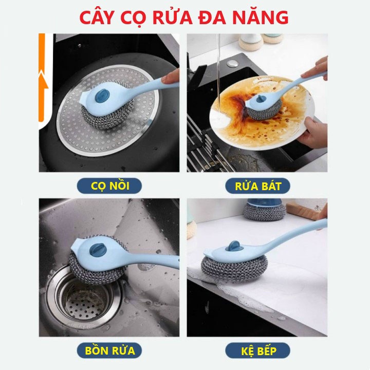 Dụng cụ cọ rửa đa năng, cọ xoong nồi, cọ bếp, cọ rửa bát đĩa, Cây cọ rửa đa năng cầm tay cán dài tiện dụng
