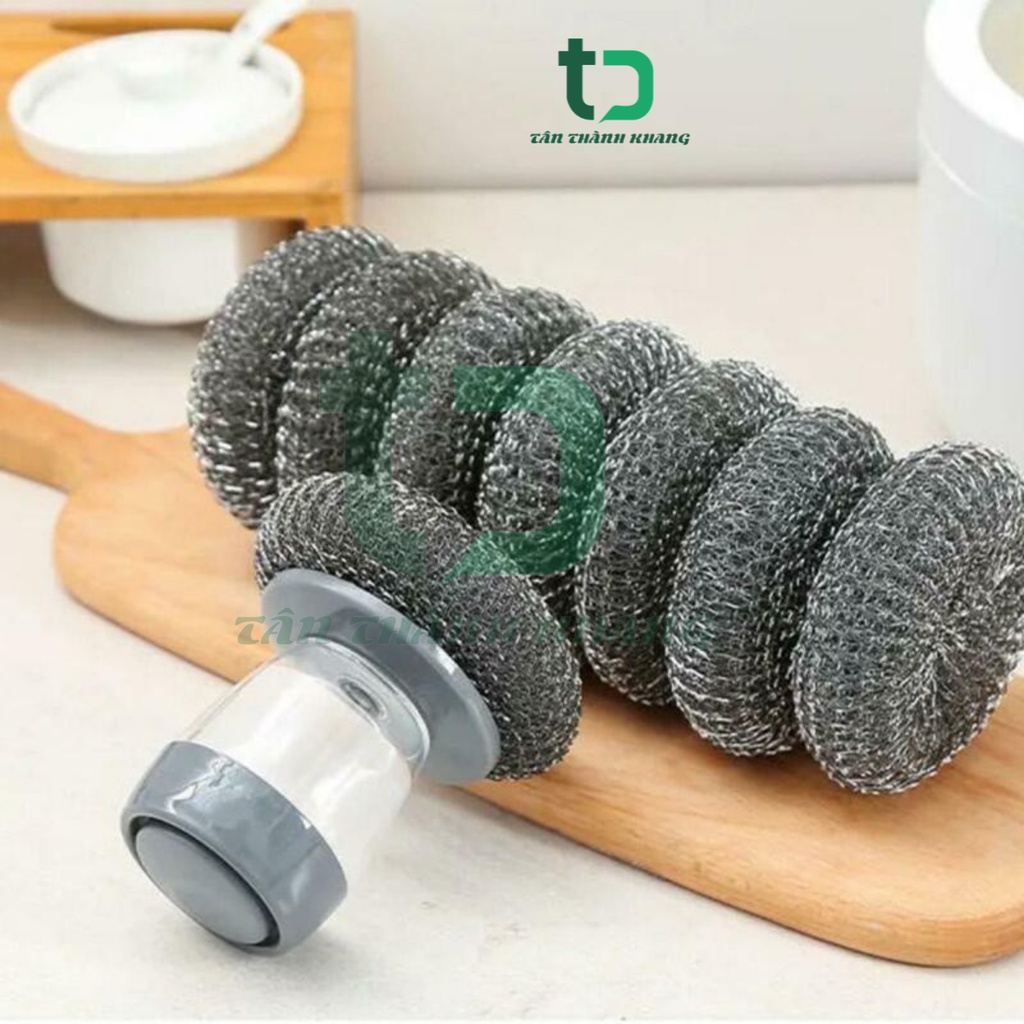 - Chất liệu: Làm bằng kim loại. Thiết kế thông minh dễ cọ rửa, làm sạch. Đặc biệt không làm tổn thương tay. Dùng để rửa bếp, chậu rửa, gạch men.