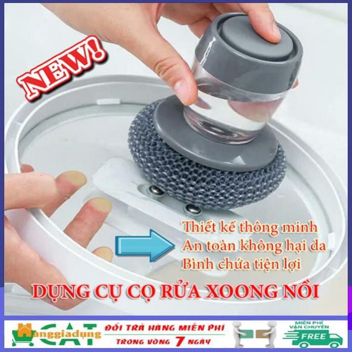 Dụng Cụ Cọ Rửa Đa Năng, Cọ Xoong Nồi, Cọ Bếp, Cọ Rửa Bát Đĩa Có Hộp Chứa Xà Phòng Tự Động Chảy Ra Nhờ Lực Nén Khi Cọ Rửa