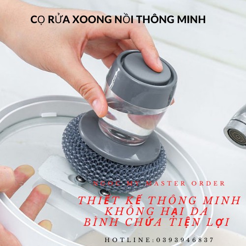 Dụng cụ cọ rửa đa năng, cọ xoong nồi, cọ bếp, cọ rửa bát đĩa có bình chứa tiện lợi