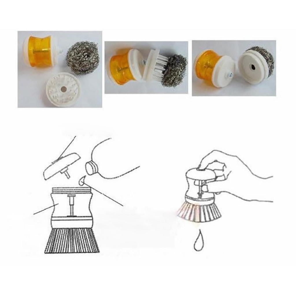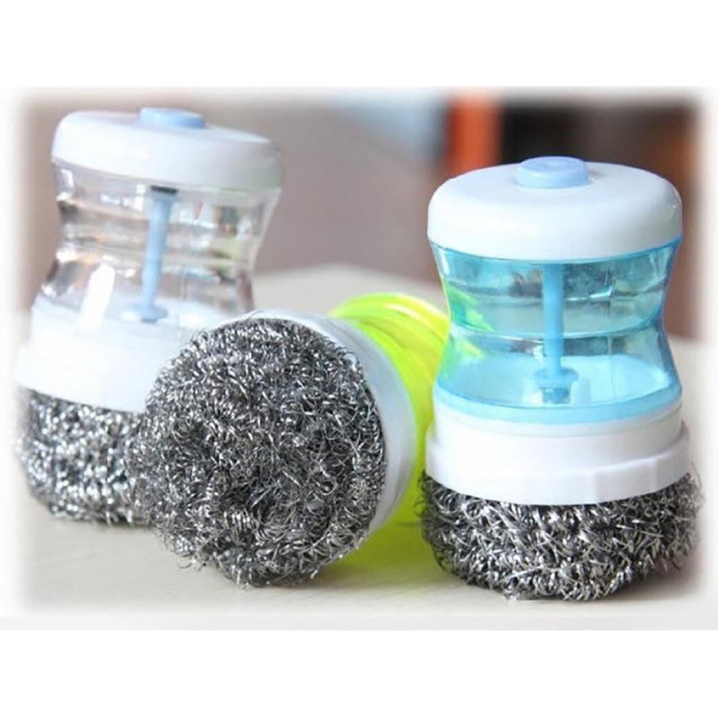 Dụng cụ này có một bầu đựng nước rửa chén bát ở phía trên. Khi bạn cọ xoong nồi, nước rửa chén sẽ tự động chảy xuống phần bàn chải giúp tẩy cọ thật nhanh và sạch. Bạn chỉ cần cho một lượng xà phòng rửa bát rất ít, sau khi cho vào bầu đựng, bạn đổ thêm ít nước vào và lắc nhẹ rồi sử dụng. Đây là một cách rửa sạch xoong nồi tiện ích mà lại tiết kiệm nữa.