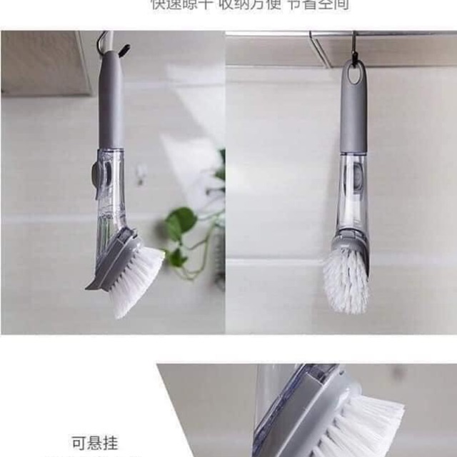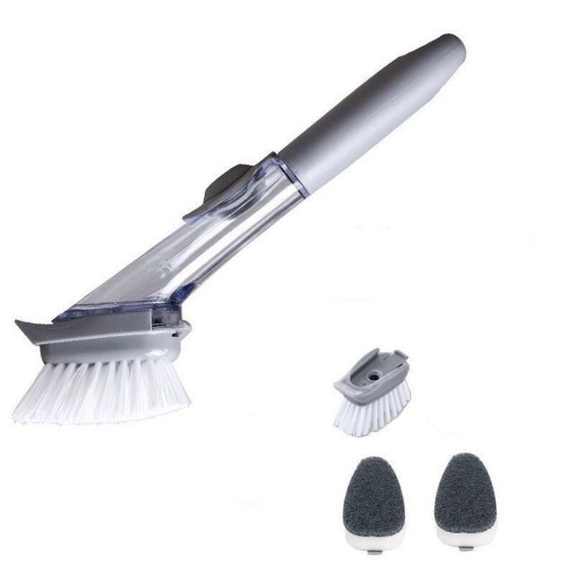 ➡ Sử dụng dễ dàng: tháo miếng cọ, đổ nước rửa vào phần chứa ở tay cầm, lắp lại & không lo hết nước rửa.