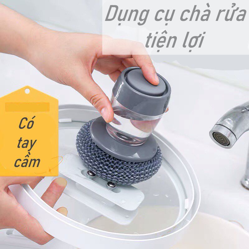 Dụng cụ cọ rửa đa năng, cọ xoong nồi, cọ bếp, cọ rửa bát đĩa có bình chứa tiện lợi