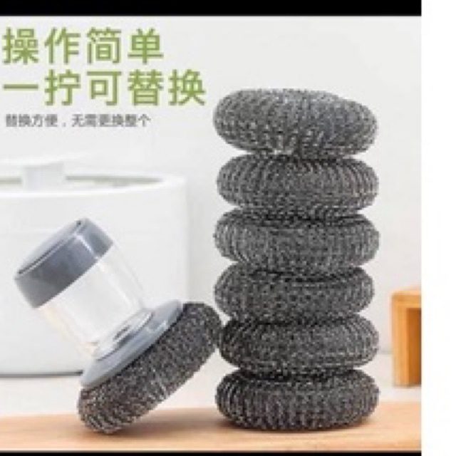 Đầu cọ của dụng cụ làm bằng các sợi inox mảnh không chỉ giúp dễ cọ sạch xoong nồi mà còn tránh được hiện tượng han gỉ trong quá trình sử dụng. Thiết kế đơn giản này giúp người dùng dễ dàng thay đầu cọ mới bằng thao tác tháo-lắp.