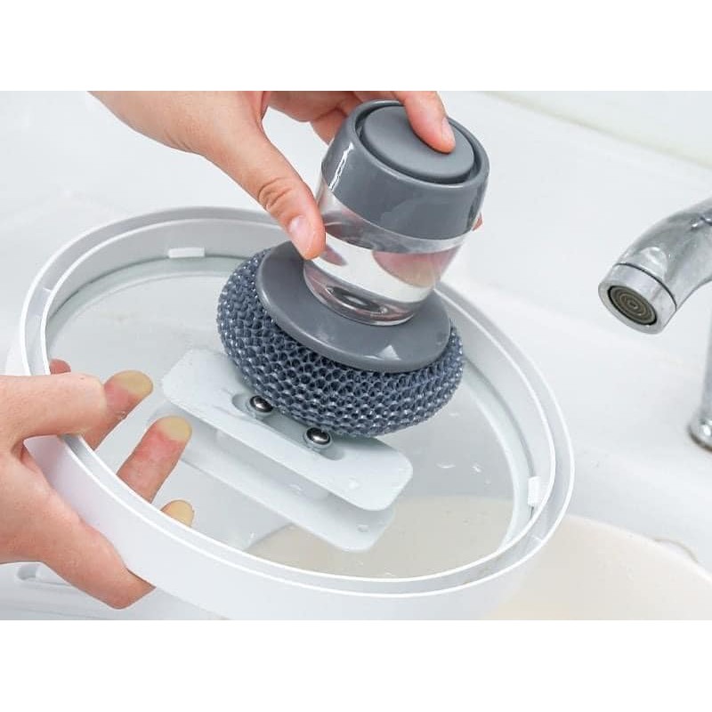 Dụng cụ cọ xoong nồi có ngăn đựng nước rửa bát Dụng Cụ Chà Xoong Nồi Kèm Hủ Đựng Nước Rửa Chén Tiện Lợi