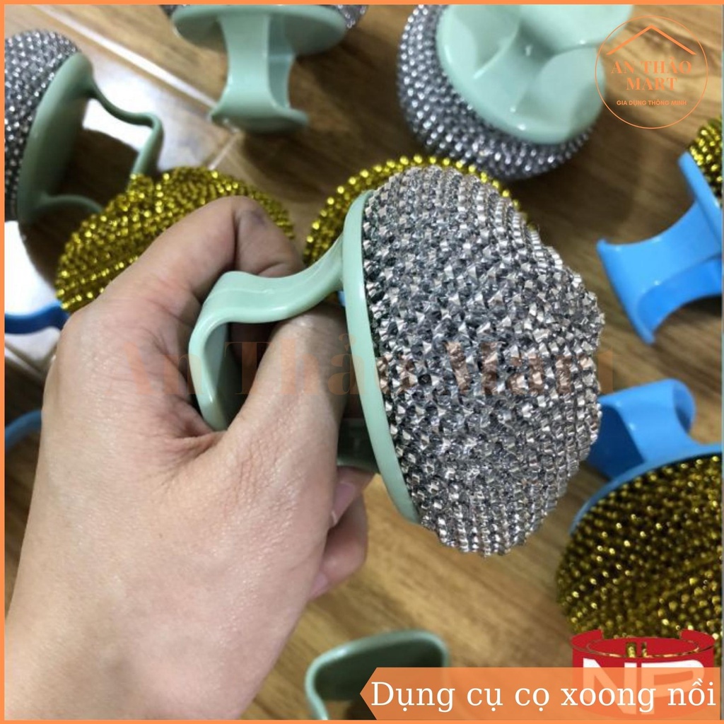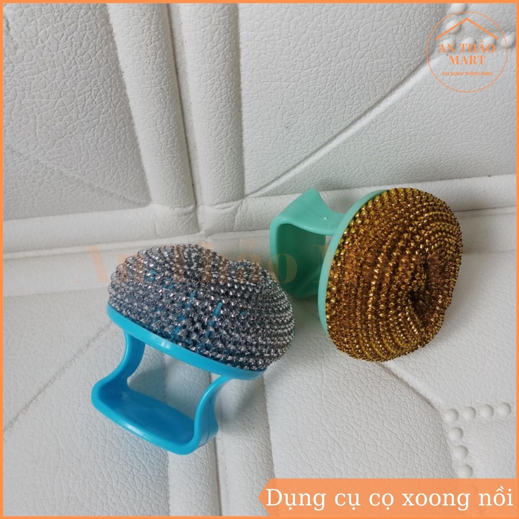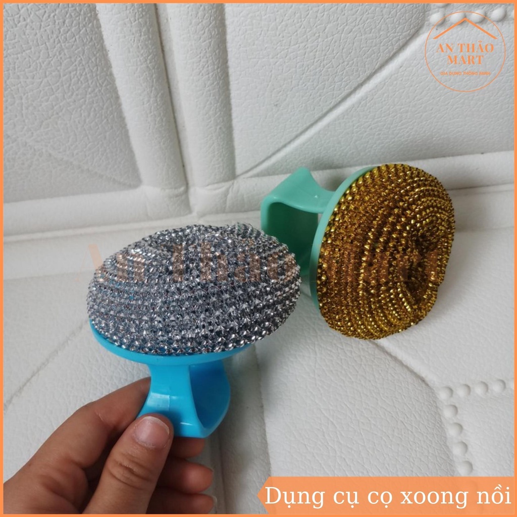 - Dụng cụ cọ xoong nồi có tay cầm giúp bạn sẽ dễ dàng cọ xoong, nồi, chảo, bồn rửa hoặc các vật gia dụng khác một cách dễ dàng. Với tay cầm tiện lợi bạn dễ dàng cọ rửa đồ nhanh chóng, khi không sử dụng bạn có thể treo vào góc đồ cũng vô cùng tiện lợi.