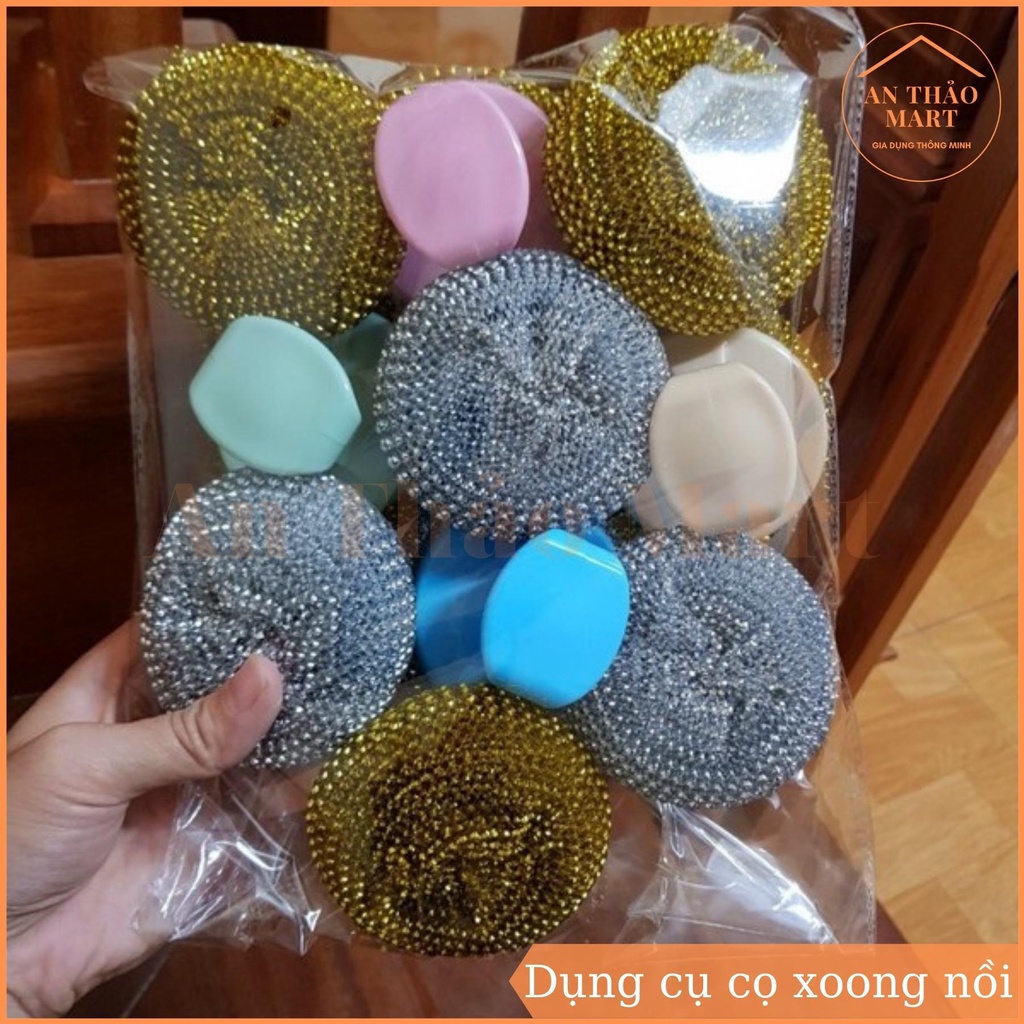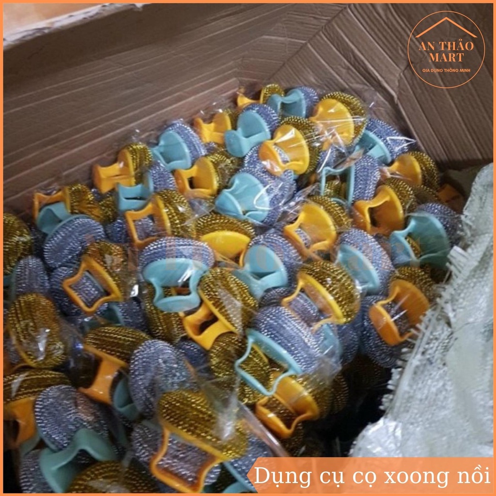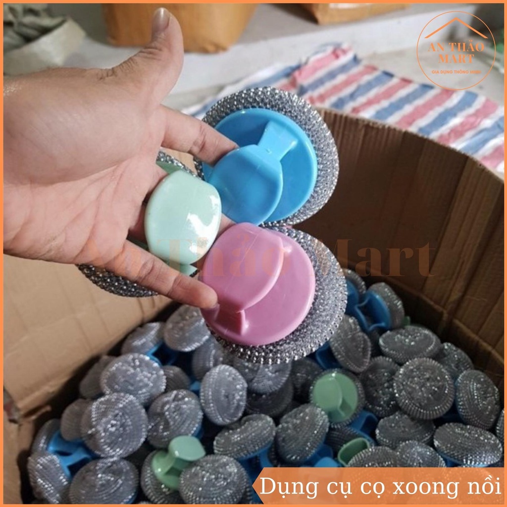 - Dụng cụ cọ xoong nồi có tay cầm giúp bạn sẽ dễ dàng cọ xoong, nồi, chảo, bồn rửa hoặc các vật gia dụng khác một cách dễ dàng. Với tay cầm tiện lợi bạn dễ dàng cọ rửa đồ nhanh chóng, khi không sử dụng bạn có thể treo vào góc đồ cũng vô cùng tiện lợi.
