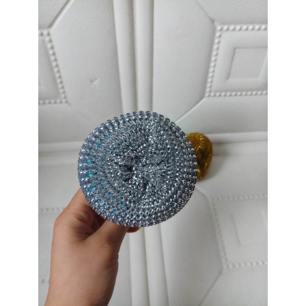 - Miếng chà rửa được làm từ những sợi nhôm nhỏ, có độ cứng vừa phải, không làm hỏng lớp tráng nồi, xoong chảo mà vẫn giúp đánh bay các vết bẩn "cứng đầu" nhất mà không cần sử dụng đến nước rửa bát