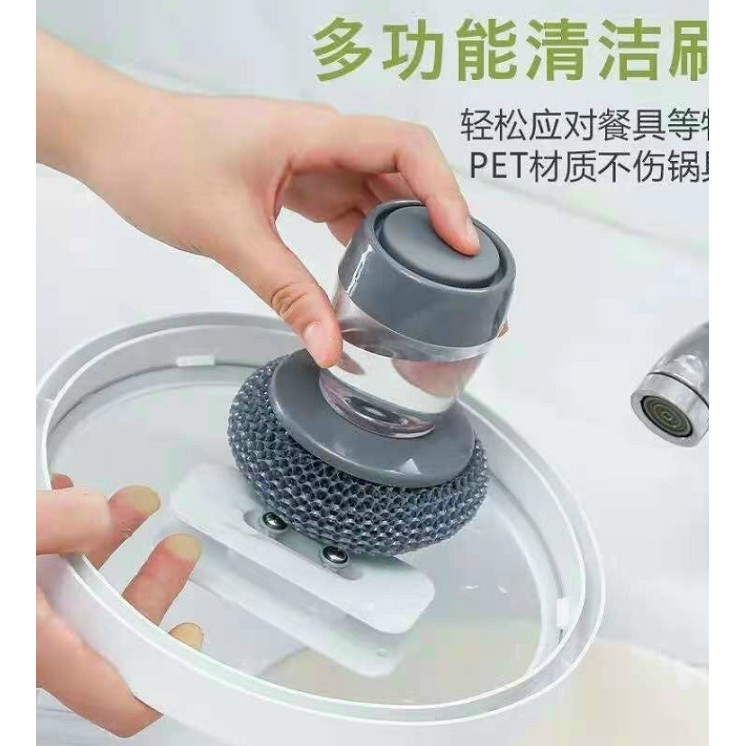 DỤNG CỤ CỌ XOONG NỒICây cọ chà rửa xoong nồi có ngăn đựng xà phòng và kệ để ráo .
