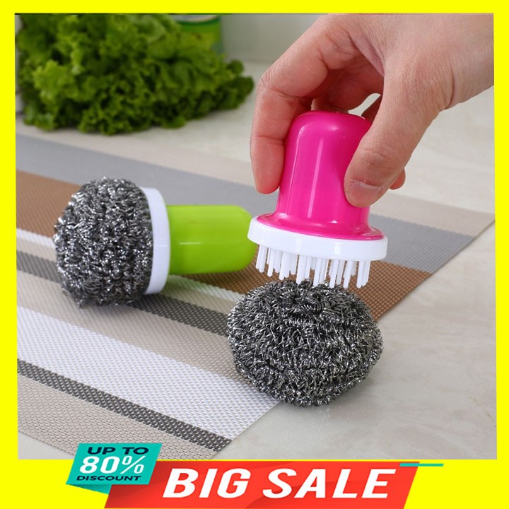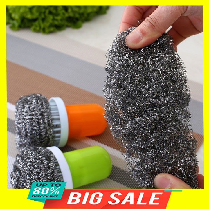 Nhà cửa & Đời sống > Dụng cụ chăm sóc nhà cửa > Miếng bọt biển, miếng chà vệ sinh || Dụng cụ cọ xoong nồi sợi nhôm có tay cầm bằng nhựa đầu trònCòn hàng