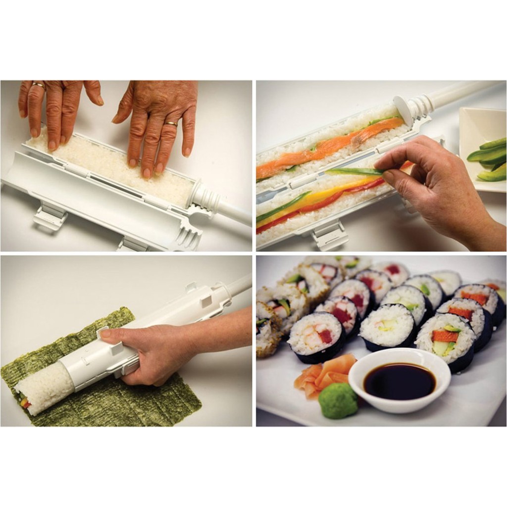 Với thiết kế dạng ống nhựa dài khép kín tiện dụng, với các chốt khóa giúp nén chặt cơm và các thành phần hải sản bên trong , đảm bảo cơm không bị rơi ra trong quá trình cuộn . Giúp cho miếng sushi trông thật đều đẹp và chặt tay .Với Dụng cụ làm SuShi tại nhà siêu nhanh SuSheizi việc cuộn sushi trở nên vô cùng đơn giản và nhanh chóng , ai cũng có thể làm được những cuộn sushi đẹp mắt và ngon miệng chị với 5 bước không thể đơn giản hơn :