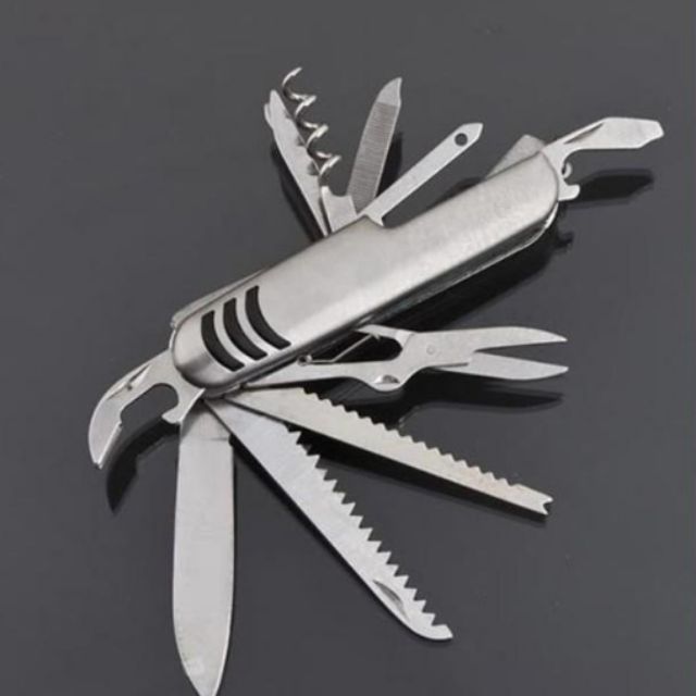 11 dụng cụ được tích hợp trong một món rất tiện ích, đặc biệt khi bạn đi phượt, đi du lịch, sẽ rất gọn trong chiếc balo nhỏ của bạn..dao lớn